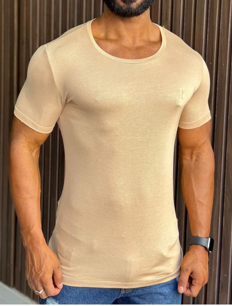 Camiseta Buh Prata Preta Slim Barra Arredondada, mais justa ao corpo, trazendo mais elegância ao estilo jogador caro.